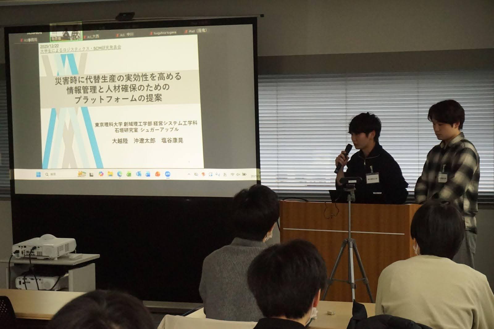 流通経済大学のチームは「平常時からのBCP対策」をテーマに、災害時のサプライチェーン継続に向けた発表を行いました。
