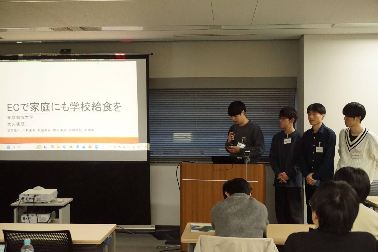 東京都市大学のチームは、学校給食センターという既存の公共インフラを活用した社会課題解決型のEC戦略を発表しました。この発表のユニークな点は、給食に対する「懐かしさ」という感情的な価値と社会課題解決を結びつけた点です。調査データによれば、大人の43.7%が「もう一度学校給食を食べてみたい」それも親子で食べたい気持ちがあることを示しています。