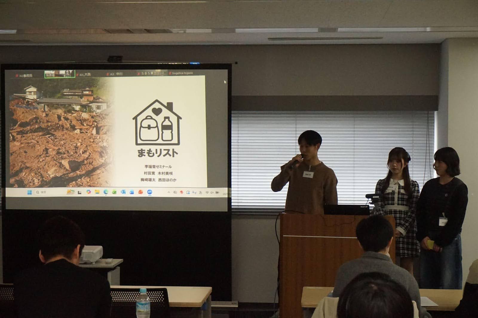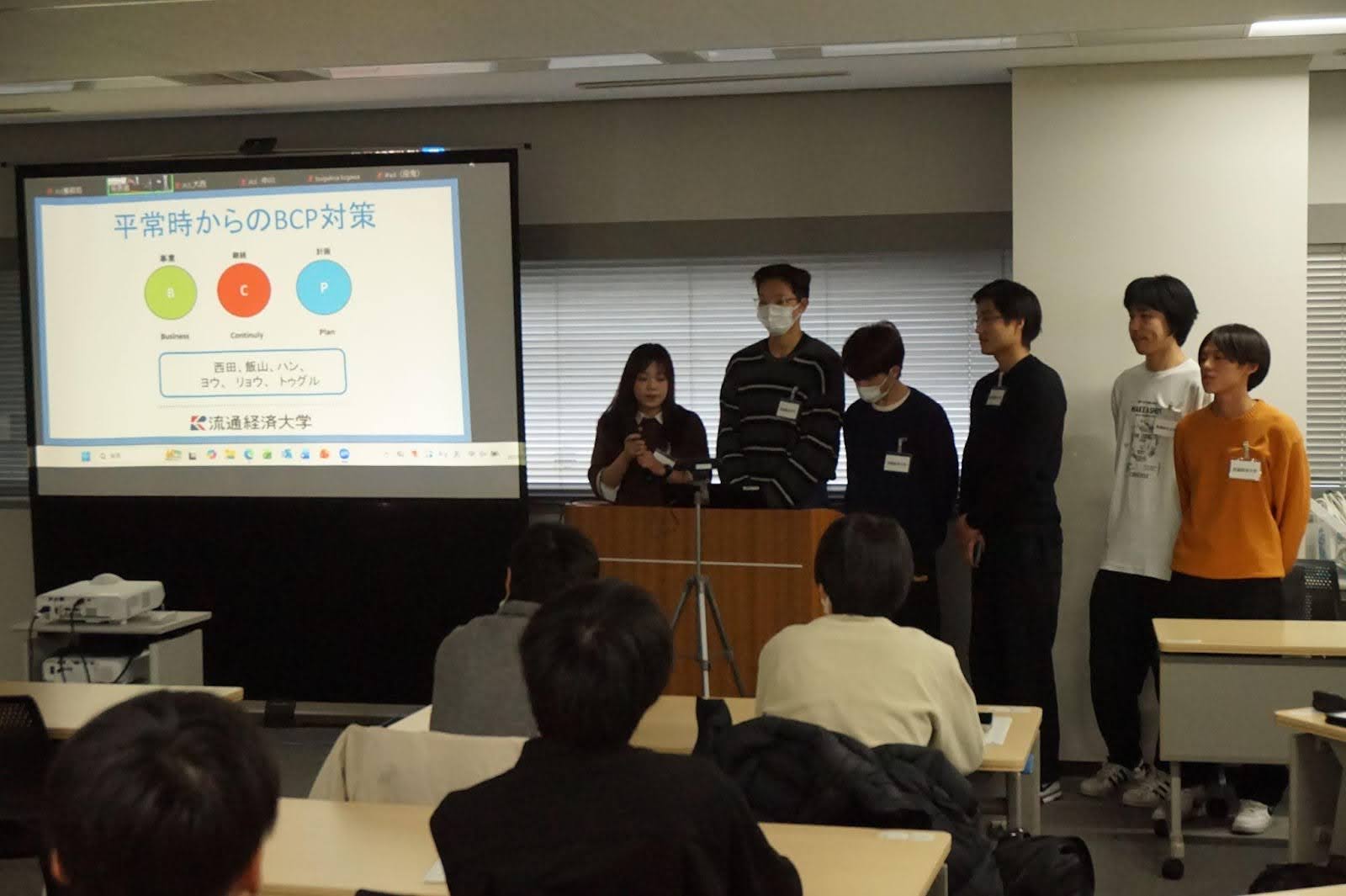 流通経済大学のチームは「平常時からのBCP対策」をテーマに、災害時のサプライチェーン継続に向けた発表を行いました。