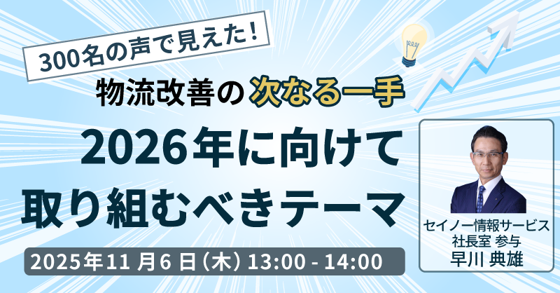 第1回となるテーマは「物流データの可能性を引き出す」。 可視化への関心が高まる一方で、データを成果にどう結びつけるかは、多くのCLOにとって次なる課題です。本セミナーでは物流データが生み出す実践的な改革アプローチをご紹介します!
