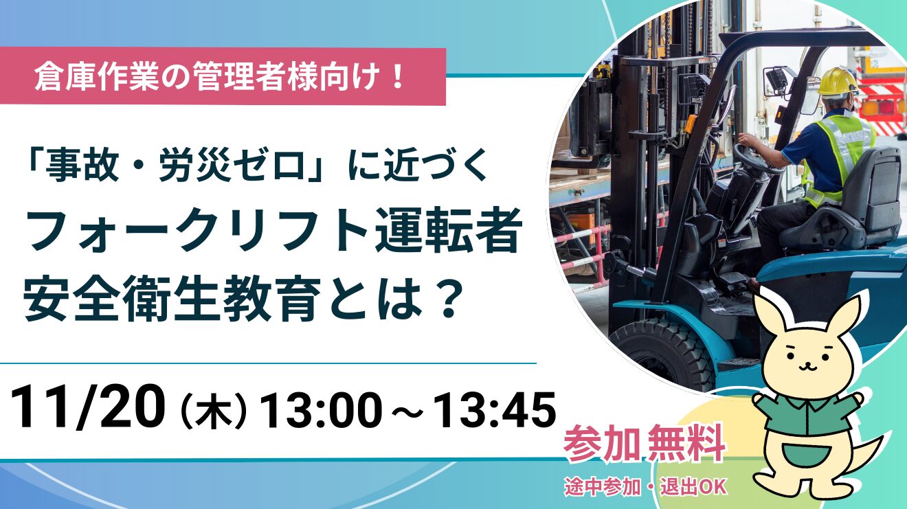 事故防止に効果的な安全衛生教育の具体的手法を解説。フォークリフト作業における事故ゼロを目指す実践的アプローチをご紹介する大人気無料オンラインセミナーです。