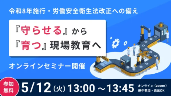 令和8年施行・労働安全衛生法改正への備え 「ルールを守らせる」から「自然に育つ」現場へ! 多角化するリスクに対応する、次世代の現場教育セミナー